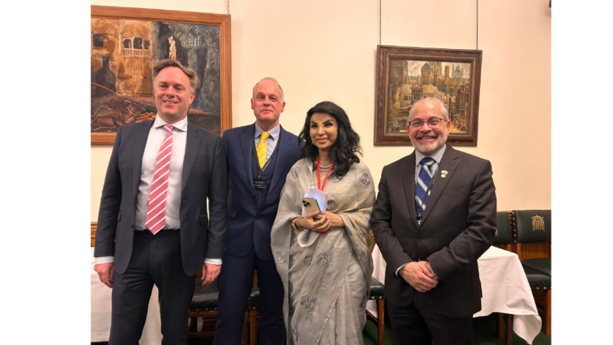 L-R Julian Sturdy MP, Prof Timothy Walsh, Ms. Saida Tasneem, Bangladesh High Commissioner to the UK, Ireland and Liberia and Mr Milton Inniss, High Commissioner of Barbados to the UK