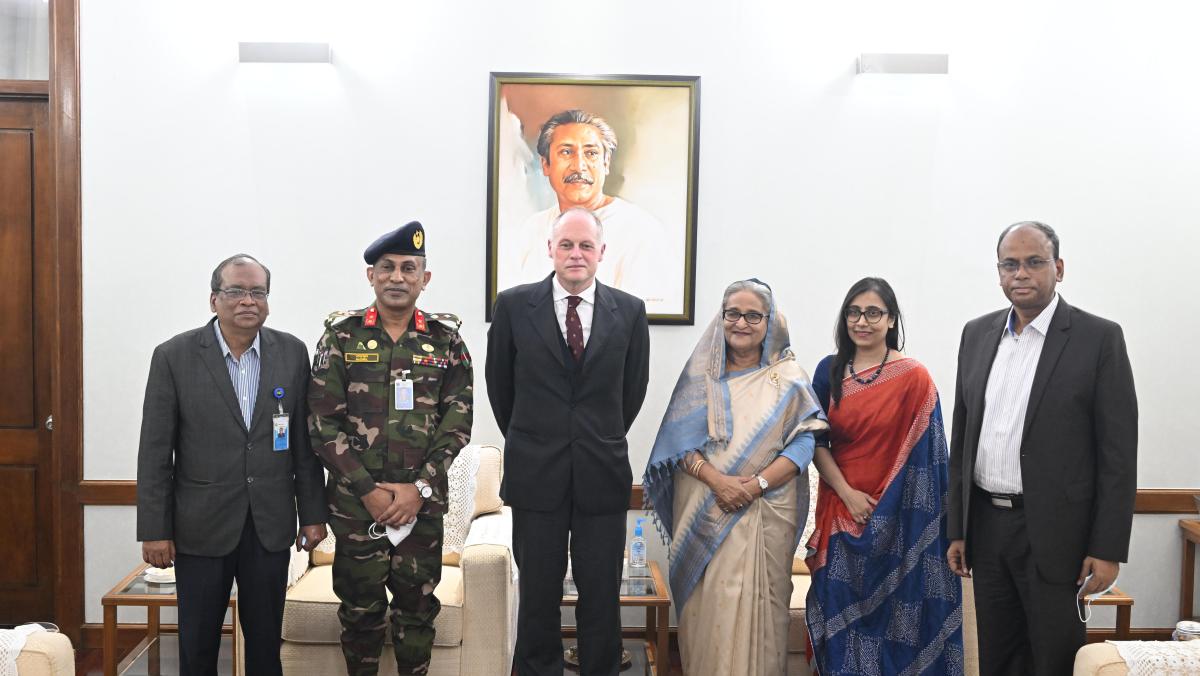Brigadier General Dr Md Nazmul Haque, Director of Dhaka Medical College Hospital and Dr Refath Farzana, Postdoctoral Research Associate at University of Oxford, accompanied Prof Walsh in the meeting. The team also updated Prime Minister Hasina on ongoing collaborative research between IOI and Bangladeshi public hospitals.