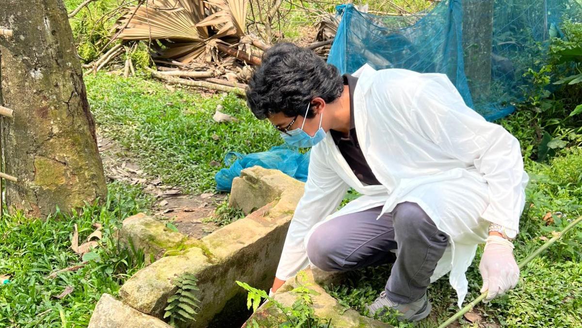 Saifur collecting a sample from the local environment. Credit: S. Rahman